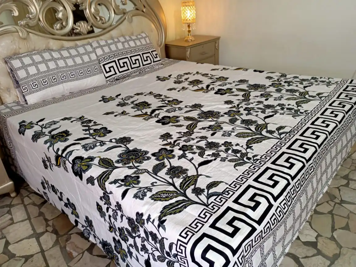 Buy Premium Quality Crystal Cotton Bedsheets in Pakistan at Best Prices. These Airish Printed Bedsheets Add Royalty & Grandeur to Your Room And Give A New Look To Your Bed. This Fabric is Crystal Cotton and is Sufficient to Use in all Seasons.
